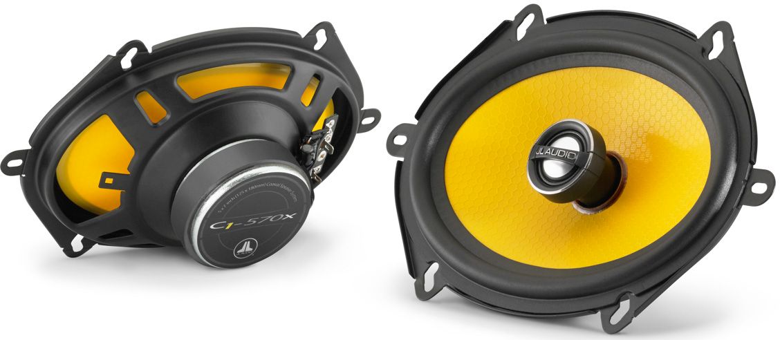 C1 woofer drivers benefit from proprietary FEA modeling and JL Audio's expertise in low-frequency driver design. This knowledge is used to create speakers that can play loudly, while maintaining a smooth, dynamic, low distortion sound. At the core of the C1-570x is a proprietary, stamped, steel 5 x 7-inch (125 x 180 mm) oval frame and a DMA-optimized motor system. A mineral-filled, injection-molded polypropylene cone is suspended with a rubber surround on the front, and a carefully engineered flat Conex® spider at the top of the voice coil, to precisely control motion and prevent impact between the voice coil and the back plate. Tinsel leads are carefully routed and attached to the spider to prevent fatigue and buzzing. These are the same kinds of features and materials normally found on much more expensive loudspeakers.