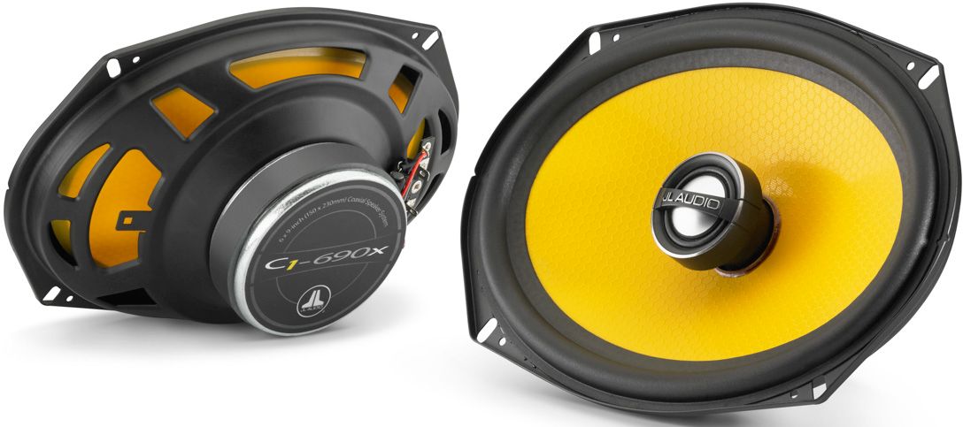 C1 woofer drivers benefit from proprietary FEA modeling and JL Audio's expertise in low-frequency driver design. This knowledge is used to create speakers that can play loudly, while maintaining a smooth, dynamic, low distortion sound. At the core of the C1-690x is a proprietary, stamped, steel 6 x 9-inch (150 x 230 mm) oval frame and a DMA-optimized motor system. A mineral-filled, injection-molded polypropylene cone is suspended with a rubber surround on the front, and a carefully engineered flat Conex® spider at the top of the voice coil, to precisely control motion and prevent impact between the voice coil and the back plate. Tinsel leads are carefully routed and attached to the spider to prevent fatigue and buzzing. These are the same kinds of features and materials normally found on much more expensive loudspeakers.
