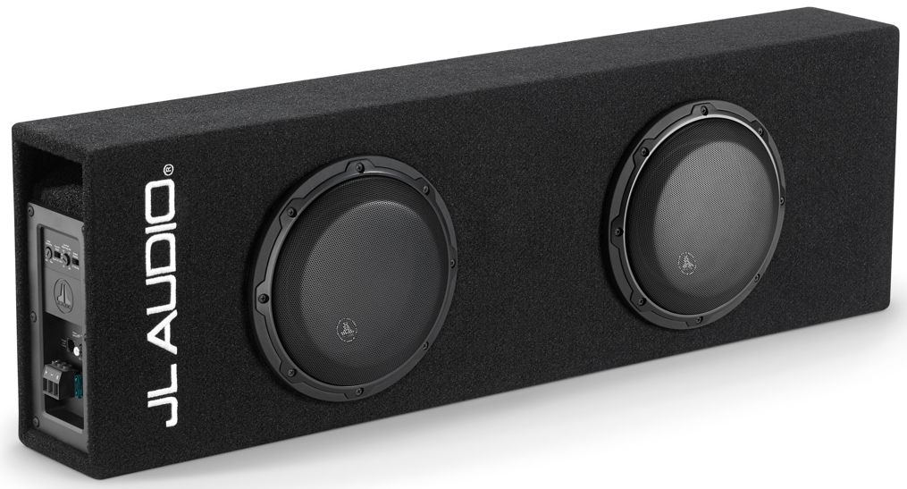 Finish: Black, high-grade automotive carpet with silver "JL AUDIO" embroidery on front baffle. Steel mesh grilles are included to protect the subwoofer drivers.