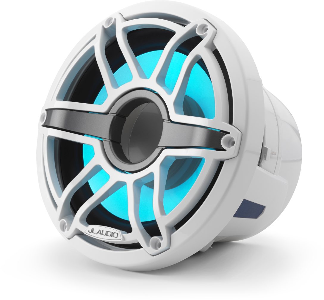 Purpose-engineered and built for real marine duty, the M6 infinite-baffle woofers are designed to operate without a dedicated enclosure. Long excursion capability and rugged suspension systems help produce deep, powerful bass response that will transform your boat's audio system. This model also features the added visual impact of JL Audio’s Transflective™ RGB LED lighting, a patent-pending technology that emits a smooth lighting effect through the woofer cone, with a choice of several lighting colors. Add an optional RGB controller to create thousands of color variations. Professional installation is strongly recommended.