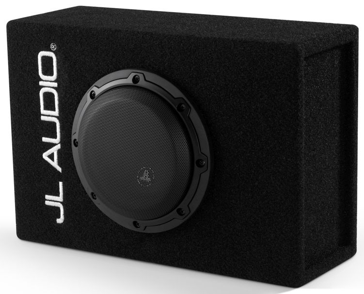 Finish: Black, high-grade automotive carpet with silver "JL AUDIO" embroidery on front baffle. A steel mesh grille is included to protect the subwoofer driver.